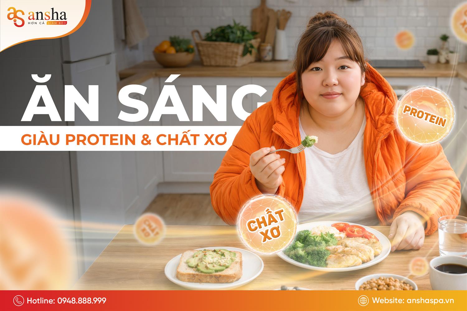 Bữa sáng giàu protein và chất xơ giúp cơ thể duy trì cảm giác no lâu, giảm mức đường huyết dao động và hạn chế tình trạng thèm ăn giữa buổi. Khi mức insulin được giữ ổn định, khả năng đốt mỡ được tăng cường, hỗ trợ giảm cân theo cơ chế tự nhiên của cơ thể. Protein còn giúp bảo vệ khối cơ, yếu tố quan trọng giúp tăng chuyển hóa và cải thiện vóc dáng bền vững.