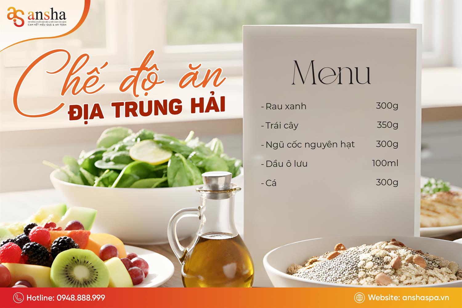 Chế độ ăn Địa Trung Hải được xem là một trong những phương pháp giảm cân lành mạnh nhất thế giới. Thực đơn tập trung vào rau xanh, trái cây, ngũ cốc nguyên hạt, dầu ô liu, cá và các loại hạt. Việc hạn chế thịt đỏ, thực phẩm chế biến sẵn và đường giúp cơ thể giảm lượng calo xấu, đồng thời bổ sung nhiều chất béo tốt hỗ trợ tim mạch và chuyển hóa năng lượng.