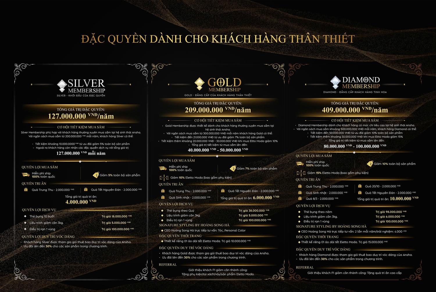 Ansha VIP Membership được xây dựng với ba hạng thẻ: