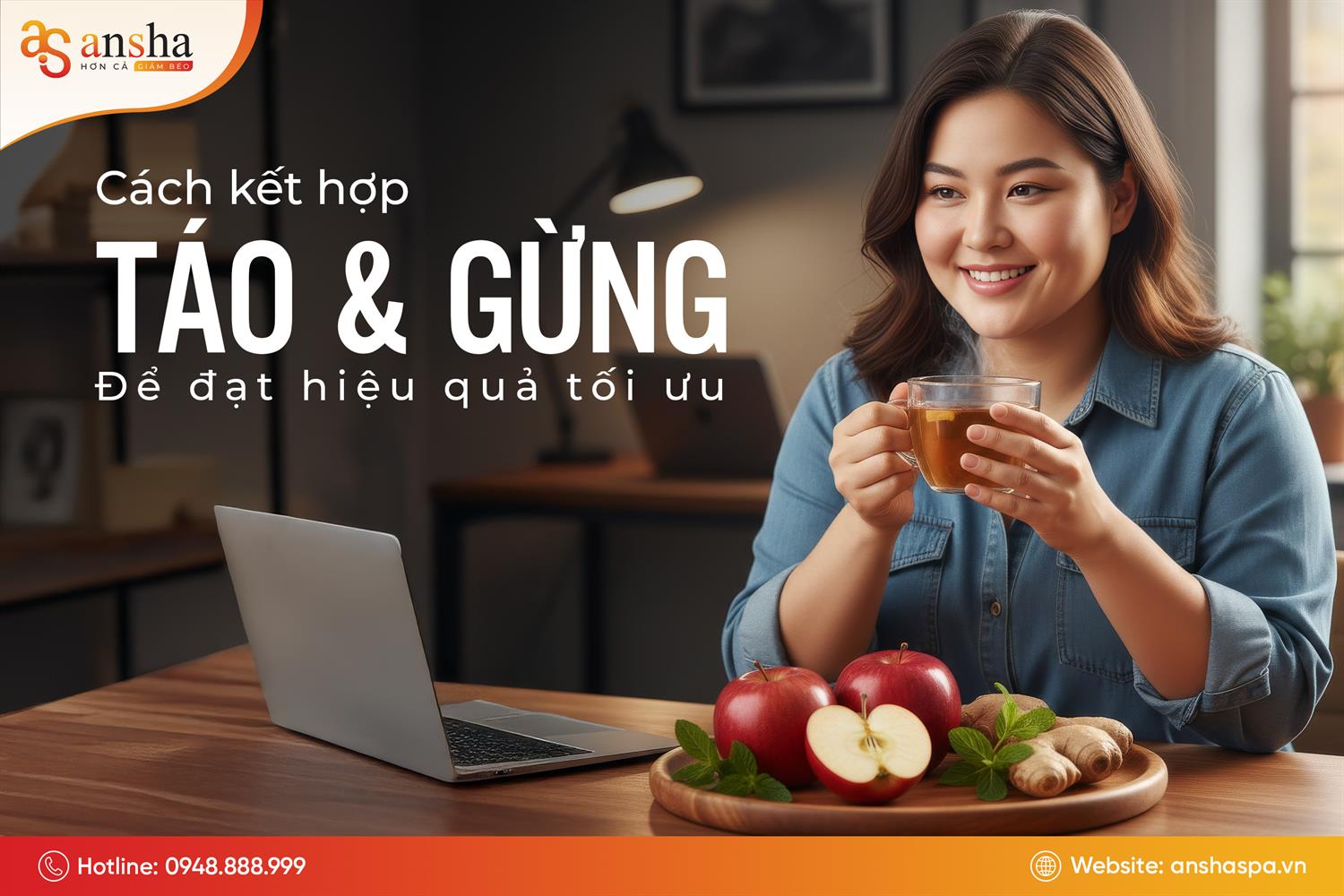 Táo mang lại vị ngọt thanh tự nhiên, giúp cân bằng vị cay nồng của gừng, tạo nên thức uống dễ chịu, ấm áp và tốt cho sức khỏe. Sự kết hợp này giúp cơ thể vừa tiêu thụ ít calo, vừa tăng quá trình sinh nhiệt, từ đó hỗ trợ giảm cân mà không gây mệt mỏi. Ngoài ra, thức uống còn giúp làm sạch gan, cải thiện tuần hoàn máu và tăng cường đề kháng, yếu tố quan trọng trong mùa lạnh.
