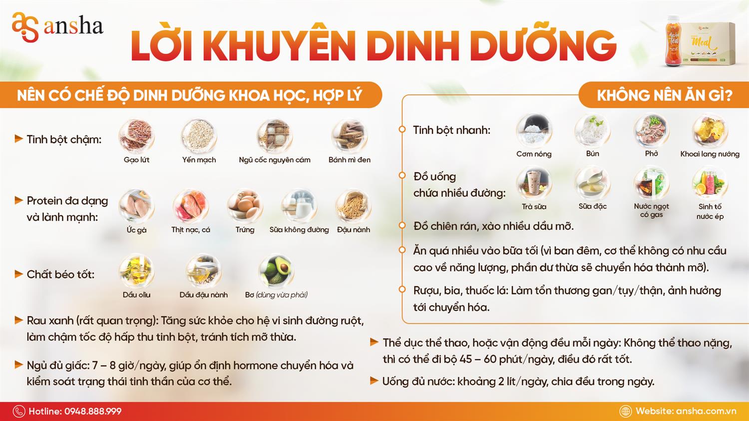 Lời khuyên dinh dưỡng dành riêng cho khách hàng của Ansha.